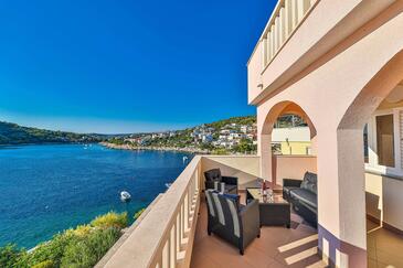 Ferienwohnung bietet Platz für 8 Gäste. Die Betten sind in Schlafzimmern, die es 4 gibt, innerhalb einer Gesamtfläche von 108m2, angeordnet. Die Gäste haben eine eigene Terrasse zur Verfügung, auf der sie in warmen Sommernächten genießen können. Das Apartment bietet Meerblick. Für vollen Genuss und Entspannung gibt es einen privaten Grill für Gäste dieser Unterkunft. Während ihres Aufenthalts können sich Gäste im privaten Schwimmbad entspannen.