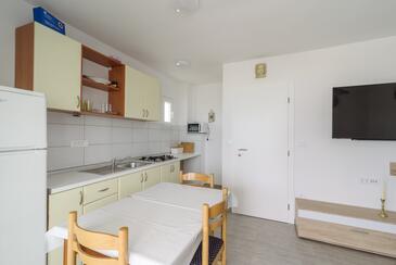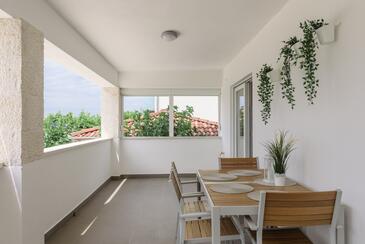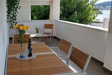 Ferienwohnung bietet Platz für 5 Gäste. Die Betten sind in Schlafzimmern, die es 2 gibt, und in Wohnzimmer, innerhalb einer Gesamtfläche von 55m2, angeordnet. Die Gäste haben eine eigene Terrasse zur Verfügung, auf der sie in warmen Sommernächten genießen können. Das Apartment bietet Meerblick.