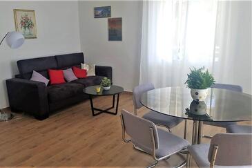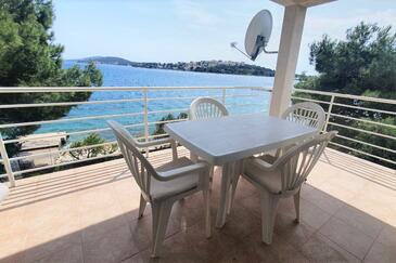 Ferienwohnung bietet Platz für 6 Gäste. Die Betten sind in Schlafzimmern, die es 2 gibt, und in Wohnzimmer, innerhalb einer Gesamtfläche von 64m2, angeordnet. Die Gäste haben eine eigene Terrasse zur Verfügung, auf der sie in warmen Sommernächten genießen können. Das Apartment bietet Meerblick. Es ist erlaubt, Speisen auf dem Gemeinschafts-Grill vorzubereiten.
