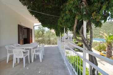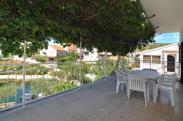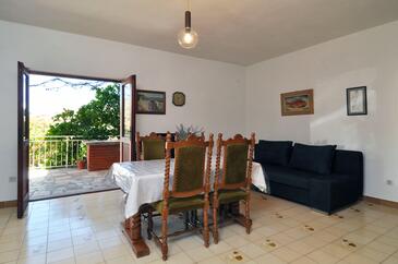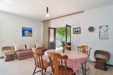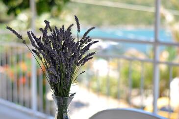 Ferienwohnung bietet Platz für 5 Gäste. Die Betten sind in Schlafzimmern, die es 2 gibt, und in Esszimmer, innerhalb einer Gesamtfläche von 53m2, angeordnet. Die Gäste haben eine eigene Terrasse zur Verfügung, auf der sie in warmen Sommernächten genießen können. Das Apartment bietet Meerblick. Es ist erlaubt, Speisen auf dem Gemeinschafts-Grill vorzubereiten.