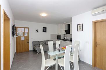 Ferienwohnung bietet Platz für 5 Gäste. Die Betten sind in Schlafzimmern, die es 2 gibt, innerhalb einer Gesamtfläche von 41m2, angeordnet. Die Gäste haben eine eigene Terrasse zur Verfügung, auf der sie in warmen Sommernächten genießen können. Das Apartment bietet Meerblick. Es ist erlaubt, Speisen auf dem Gemeinschafts-Grill vorzubereiten. Während ihres Aufenthalts können Gäste das gemeinsam zur Nutzung stehende Schwimmbad benutzen.