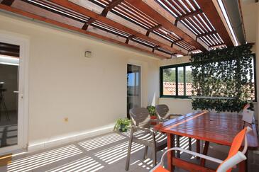 Ferienwohnung bietet Platz für 4 Gäste. Die Betten sind in Schlafzimmern, die es 1 gibt, und in Wohnzimmer, innerhalb einer Gesamtfläche von 43m2, angeordnet. Die Gäste haben eine eigene Terrasse zur Verfügung, auf der sie in warmen Sommernächten genießen können. Es ist erlaubt, Speisen auf dem Gemeinschafts-Grill vorzubereiten.