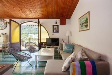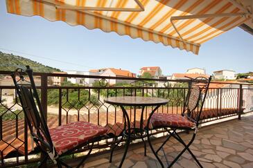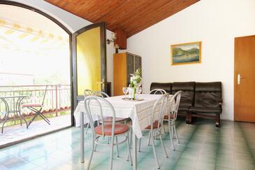 Ferienwohnung bietet Platz für 5 Gäste. Die Betten sind in Schlafzimmern, die es 3 gibt, innerhalb einer Gesamtfläche von 59m2, angeordnet. Die Gäste haben einen eigenen Balkon zur Verfügung, auf der sie in warmen Sommernächten genießen können. Das Apartment bietet Meerblick. Es ist erlaubt, Speisen auf dem Gemeinschafts-Grill vorzubereiten.