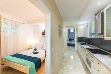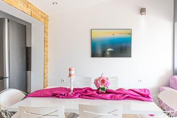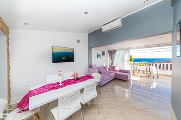 Haus bietet Platz für 15 Gäste. Die Betten sind in Schlafzimmern, die es 5 gibt, und in Wohnzimmer, innerhalb einer Gesamtfläche von 150m2, angeordnet. Die Gäste haben eine eigene Terrasse zur Verfügung, auf der sie in warmen Sommernächten genießen können. Das Haus bietet Meerblick. Für vollen Genuss und Entspannung gibt es einen privaten Grill für Gäste dieser Unterkunft. Während ihres Aufenthalts können sich Gäste im privaten Schwimmbad entspannen. Räume der gebuchten Unterkunftseinheit werden nicht in eine Ganze verbunden.