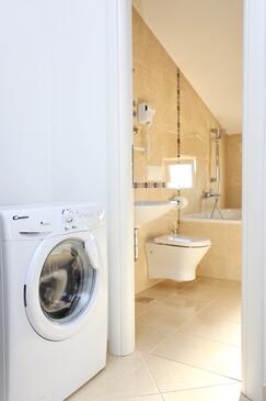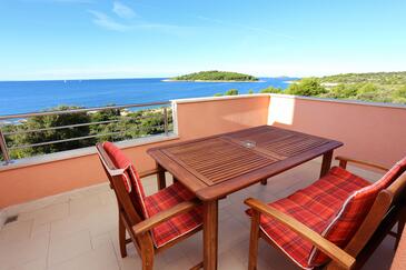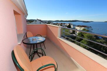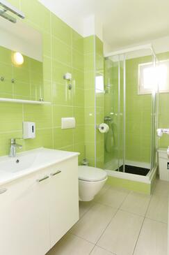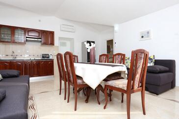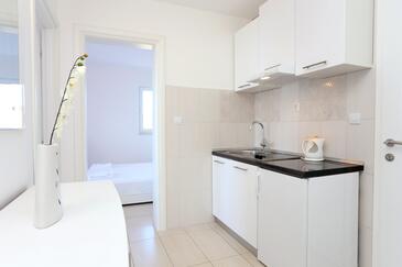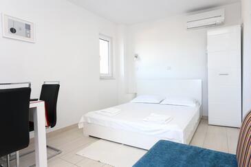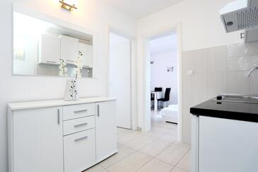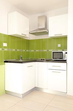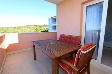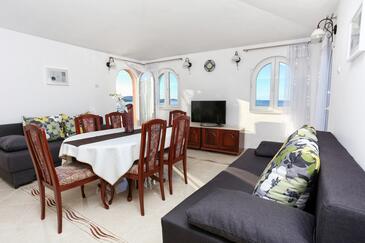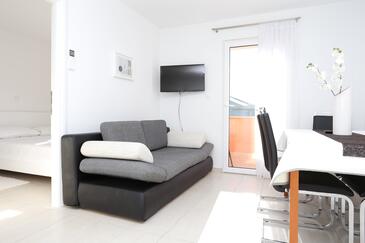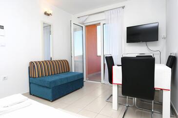 Ferienwohnung bietet Platz für 6 Gäste. Die Betten sind in Schlafzimmern, die es 2 gibt, und in Wohnzimmer, innerhalb einer Gesamtfläche von 57m2, angeordnet. Die Gäste haben einen eigenen Balkon zur Verfügung, auf der sie in warmen Sommernächten genießen können. Das Apartment bietet Meerblick. Es ist erlaubt, Speisen auf dem Gemeinschafts-Grill vorzubereiten.
