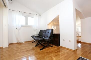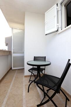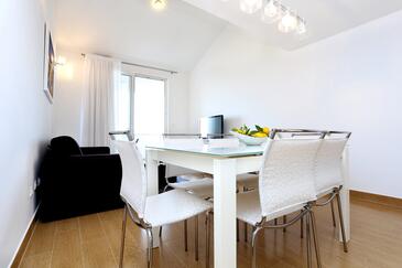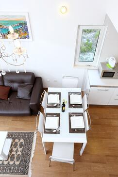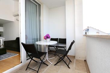 Ferienwohnung bietet Platz für 6 Gäste. Die Betten sind in Schlafzimmern, die es 2 gibt, und in Wohnzimmer, innerhalb einer Gesamtfläche von 59m2, angeordnet. Die Gäste haben eine eigene Terrasse zur Verfügung, auf der sie in warmen Sommernächten genießen können. Das Apartment bietet Meerblick. Es ist erlaubt, Speisen auf dem Gemeinschafts-Grill vorzubereiten.