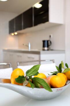 Ferienwohnung bietet Platz für 6 Gäste. Die Betten sind in Schlafzimmern, die es 2 gibt, und in Wohnzimmer, innerhalb einer Gesamtfläche von 59m2, angeordnet. Die Gäste haben eine eigene Terrasse zur Verfügung, auf der sie in warmen Sommernächten genießen können. Das Apartment bietet Meerblick. Es ist erlaubt, Speisen auf dem Gemeinschafts-Grill vorzubereiten.