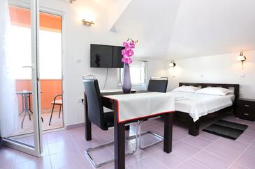 Ferienwohnung bietet Platz für 3 Gäste. Die Betten sind in Schlafzimmern, die es 1 gibt, und in Wohnzimmer, innerhalb einer Gesamtfläche von 27m2, angeordnet. Die Gäste haben einen eigenen Balkon zur Verfügung, auf der sie in warmen Sommernächten genießen können. Das Apartment bietet Meerblick. Es ist erlaubt, Speisen auf dem Gemeinschafts-Grill vorzubereiten.