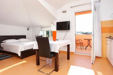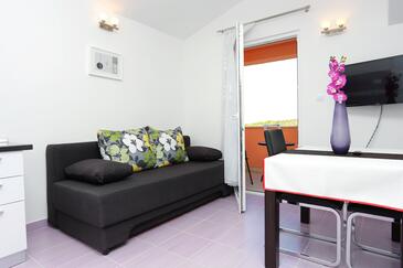 Ferienwohnung bietet Platz für 3 Gäste. Die Betten sind in Schlafzimmern, die es 1 gibt, und in Wohnzimmer, innerhalb einer Gesamtfläche von 27m2, angeordnet. Die Gäste haben einen eigenen Balkon zur Verfügung, auf der sie in warmen Sommernächten genießen können. Das Apartment bietet Meerblick. Es ist erlaubt, Speisen auf dem Gemeinschafts-Grill vorzubereiten.