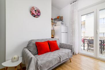 Ferienwohnung bietet Platz für 3 Gäste. Die Betten sind in Schlafzimmern, die es 2 gibt, innerhalb einer Gesamtfläche von 66m2, angeordnet. Die Gäste haben eine eigene Terrasse zur Verfügung, auf der sie in warmen Sommernächten genießen können.