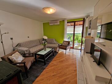 Ferienwohnung bietet Platz für 4 Gäste. Die Betten sind in Schlafzimmern, die es 2 gibt, innerhalb einer Gesamtfläche von 66m2, angeordnet. Die Gäste haben eine eigene Terrasse zur Verfügung, auf der sie in warmen Sommernächten genießen können. Das Apartment bietet Meerblick.