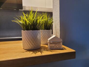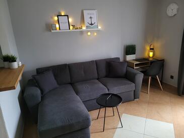 Ferienwohnung bietet Platz für 3 Gäste. Die Betten sind in Schlafzimmern, die es 1 gibt, und in Wohnzimmer, innerhalb einer Gesamtfläche von 41m2, angeordnet. Die Gäste haben einen eigenen Balkon zur Verfügung, auf der sie in warmen Sommernächten genießen können. In der Unterkunftseinheit besteht die Möglichkeit des Mitbringens von Haustieren gegen Aufpreis.