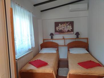 Haus bietet Platz für 4 Gäste. Die Betten sind in Schlafzimmern, die es 2 gibt, innerhalb einer Gesamtfläche von 53m2, angeordnet. In der Unterkunftseinheit besteht die Möglichkeit des Mitbringens von Haustieren gegen Aufpreis. Die reservierte Unterkunftseinheit hat keinen Balkon und keine Terrasse.
