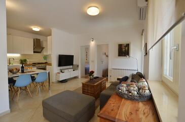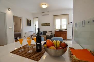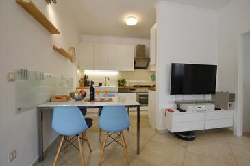Ferienwohnung bietet Platz für 4 Gäste. Die Betten sind in Schlafzimmern, die es 2 gibt, innerhalb einer Gesamtfläche von 46m2, angeordnet. Die Gäste haben eine eigene Terrasse zur Verfügung, auf der sie in warmen Sommernächten genießen können. In der Unterkunftseinheit besteht die Möglichkeit des Mitbringens von Haustieren gegen Aufpreis.