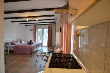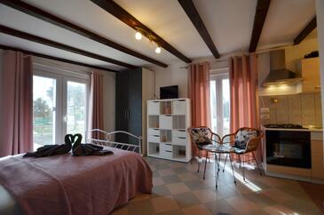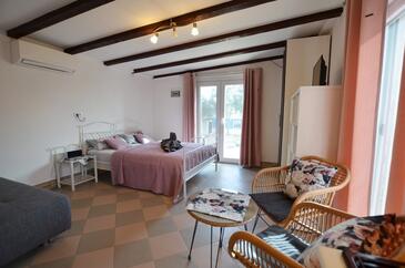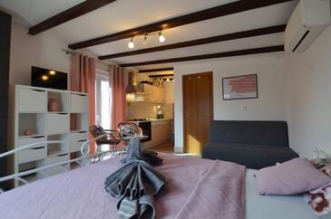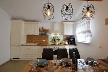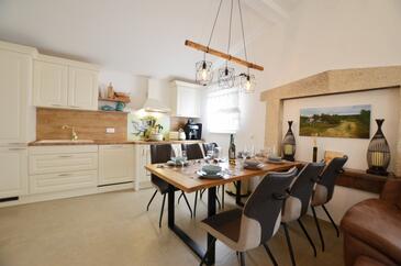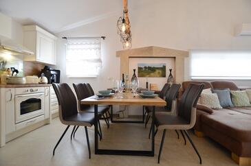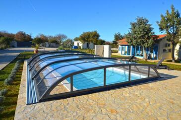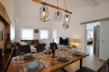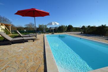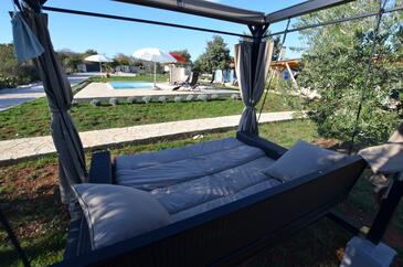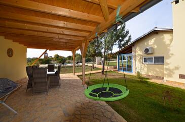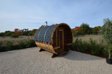 Haus bietet Platz für 8 Gäste. Die Betten sind in Schlafzimmern, die es 3 gibt, und in Wohnzimmer, innerhalb einer Gesamtfläche von 90m2, angeordnet. Die Gäste haben eine eigene Terrasse zur Verfügung, auf der sie in warmen Sommernächten genießen können. Für vollen Genuss und Entspannung gibt es einen privaten Grill für Gäste dieser Unterkunft. Während ihres Aufenthalts können sich Gäste im privaten Schwimmbad entspannen. Räume der gebuchten Unterkunftseinheit werden nicht in eine Ganze verbunden.