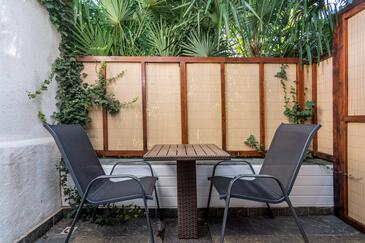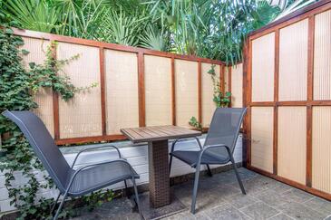 Ferienwohnung bietet Platz für 2 Gäste. Die Betten sind in Schlafzimmern, die es 1 gibt, innerhalb einer Gesamtfläche von 34m2, angeordnet. Die Gäste haben eine eigene Terrasse zur Verfügung, auf der sie in warmen Sommernächten genießen können.
