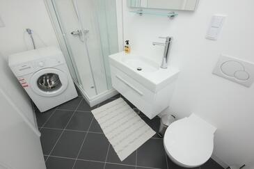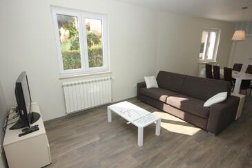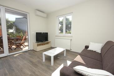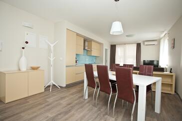 Ferienwohnung bietet Platz für 6 Gäste. Die Betten sind in Schlafzimmern, die es 3 gibt, innerhalb einer Gesamtfläche von 78m2, angeordnet. Die Gäste haben eine eigene Terrasse zur Verfügung, auf der sie in warmen Sommernächten genießen können.