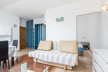 Ferienwohnung bietet Platz für 4 Gäste. Die Betten sind in Schlafzimmern, die es 1 gibt, und in Esszimmer, innerhalb einer Gesamtfläche von 40m2, angeordnet. Die Gäste haben eine eigene Terrasse zur Verfügung, auf der sie in warmen Sommernächten genießen können.