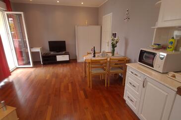 Ferienwohnung bietet Platz für 4 Gäste. Die Betten sind in Schlafzimmern, die es 1 gibt, und in Wohnzimmer, innerhalb einer Gesamtfläche von 38m2, angeordnet. Die Gäste haben einen eigenen Balkon zur Verfügung, auf der sie in warmen Sommernächten genießen können. Es ist erlaubt, Speisen auf dem Gemeinschafts-Grill vorzubereiten. In der Unterkunftseinheit besteht die Möglichkeit des Mitbringens von Haustieren gegen Aufpreis.