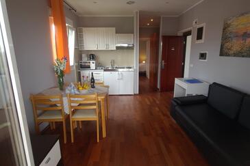 Ferienwohnung bietet Platz für 4 Gäste. Die Betten sind in Schlafzimmern, die es 1 gibt, und in Wohnzimmer, innerhalb einer Gesamtfläche von 38m2, angeordnet. Die Gäste haben einen eigenen Balkon zur Verfügung, auf der sie in warmen Sommernächten genießen können. Es ist erlaubt, Speisen auf dem Gemeinschafts-Grill vorzubereiten. In der Unterkunftseinheit besteht die Möglichkeit des Mitbringens von Haustieren gegen Aufpreis.