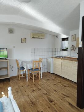 Studio bietet Platz für 2 Gäste. Die Betten sind in Schlafzimmern, die es 1 gibt, innerhalb einer Gesamtfläche von 29m2, angeordnet. Die Gäste haben eine eigene Terrasse zur Verfügung, auf der sie in warmen Sommernächten genießen können. Das Studio-Apartment bietet Meerblick.