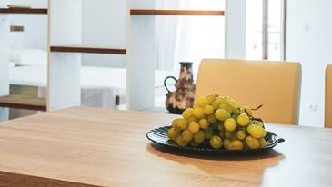 Ferienwohnung bietet Platz für 5 Gäste. Die Betten sind in Schlafzimmern, die es 1 gibt, und in Wohnzimmer, innerhalb einer Gesamtfläche von 46m2, angeordnet. Die Gäste haben einen eigenen Balkon zur Verfügung, auf der sie in warmen Sommernächten genießen können. Das Apartment bietet Meerblick. Es ist erlaubt, Speisen auf dem Gemeinschafts-Grill vorzubereiten. Die reservierte Unterkunftseinheit verfügt über einen gemeinsame Terrasse.