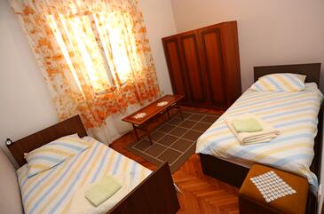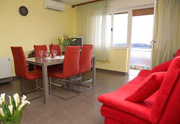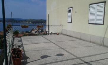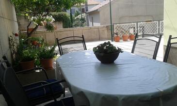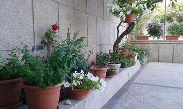 Ferienwohnung bietet Platz für 6 Gäste. Die Betten sind in Schlafzimmern, die es 3 gibt, innerhalb einer Gesamtfläche von 100m2, angeordnet. Die Gäste haben eine eigene Terrasse zur Verfügung, auf der sie in warmen Sommernächten genießen können. Das Apartment bietet Meerblick. Es ist erlaubt, Speisen auf dem Gemeinschafts-Grill vorzubereiten. Durch die Terrasse der gebuchten Unterkunftseinheit gehen auch andere Gäste oder Vermieter.