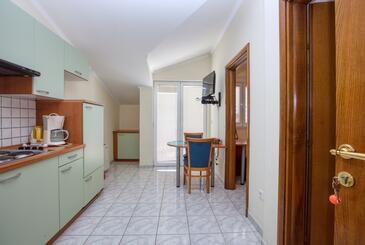Ferienwohnung bietet Platz für 2 Gäste. Die Betten sind in Schlafzimmern, die es 1 gibt, innerhalb einer Gesamtfläche von 25m2, angeordnet. Die Gäste haben einen eigenen Balkon zur Verfügung, auf der sie in warmen Sommernächten genießen können. Es ist erlaubt, Speisen auf dem Gemeinschafts-Grill vorzubereiten.