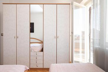 Ferienwohnung bietet Platz für 4 Gäste. Die Betten sind in Schlafzimmern, die es 2 gibt, innerhalb einer Gesamtfläche von 80m2, angeordnet. Die Gäste haben einen eigenen Balkon zur Verfügung, auf der sie in warmen Sommernächten genießen können. Es ist erlaubt, Speisen auf dem Gemeinschafts-Grill vorzubereiten.