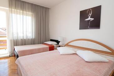 Ferienwohnung bietet Platz für 4 Gäste. Die Betten sind in Schlafzimmern, die es 2 gibt, innerhalb einer Gesamtfläche von 80m2, angeordnet. Die Gäste haben einen eigenen Balkon zur Verfügung, auf der sie in warmen Sommernächten genießen können. Es ist erlaubt, Speisen auf dem Gemeinschafts-Grill vorzubereiten.