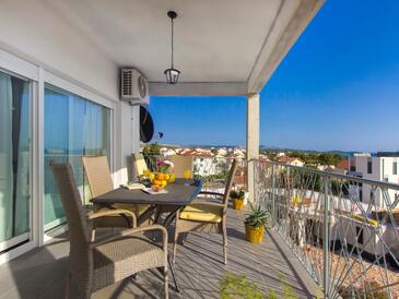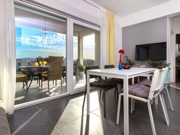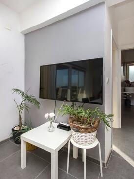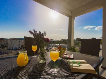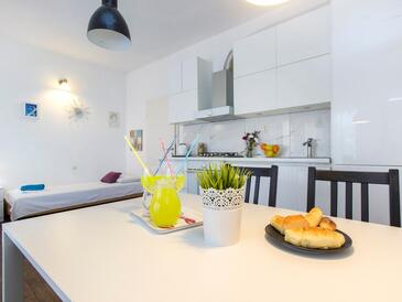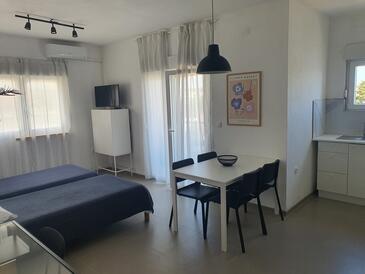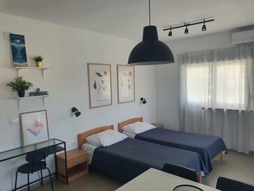 Ferienwohnung bietet Platz für 6 Gäste. Die Betten sind in Schlafzimmern, die es 2 gibt, und in Wohnzimmer, innerhalb einer Gesamtfläche von 50m2, angeordnet. Die Gäste haben eine eigene Terrasse zur Verfügung, auf der sie in warmen Sommernächten genießen können. Es ist erlaubt, Speisen auf dem Gemeinschafts-Grill vorzubereiten.