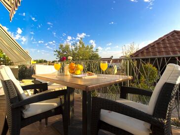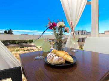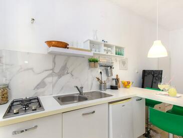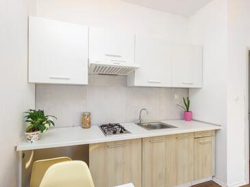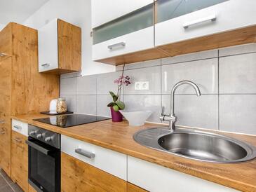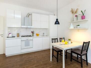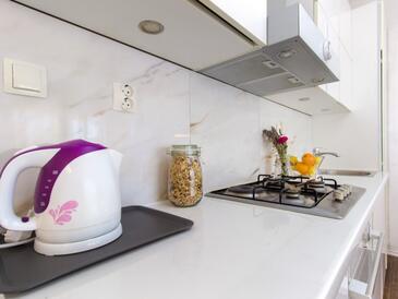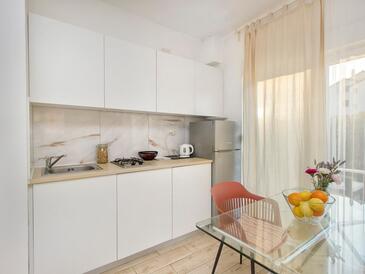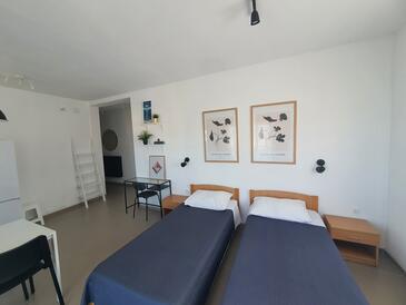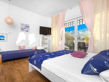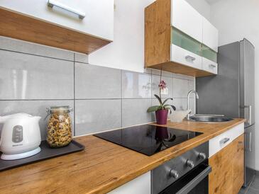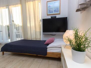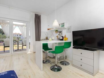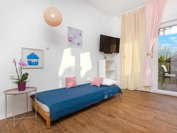Ferienwohnung bietet Platz für 6 Gäste. Die Betten sind in Schlafzimmern, die es 2 gibt, und in Wohnzimmer, innerhalb einer Gesamtfläche von 50m2, angeordnet. Die Gäste haben eine eigene Terrasse zur Verfügung, auf der sie in warmen Sommernächten genießen können. Es ist erlaubt, Speisen auf dem Gemeinschafts-Grill vorzubereiten.