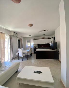 Ferienwohnung bietet Platz für 6 Gäste. Die Betten sind in Schlafzimmern, die es 3 gibt, innerhalb einer Gesamtfläche von 82m2, angeordnet. Die Gäste haben einen eigenen Balkon zur Verfügung, auf der sie in warmen Sommernächten genießen können. Das Apartment bietet Meerblick.