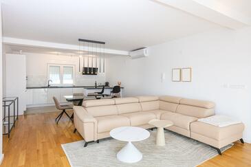 Ferienwohnung bietet Platz für 6 Gäste. Die Betten sind in Schlafzimmern, die es 2 gibt, und in Wohnzimmer, innerhalb einer Gesamtfläche von 88m2, angeordnet. Die Gäste haben einen eigenen Balkon zur Verfügung, auf der sie in warmen Sommernächten genießen können. Das Apartment bietet Meerblick.