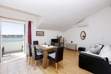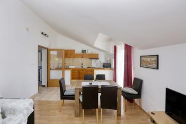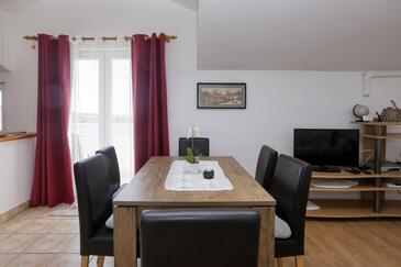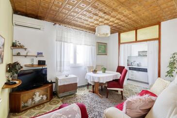 Ferienwohnung bietet Platz für 6 Gäste. Die Betten sind in Schlafzimmern, die es 3 gibt, innerhalb einer Gesamtfläche von 76m2, angeordnet. Die Gäste haben eine eigene Terrasse zur Verfügung, auf der sie in warmen Sommernächten genießen können. Das Apartment bietet Meerblick.