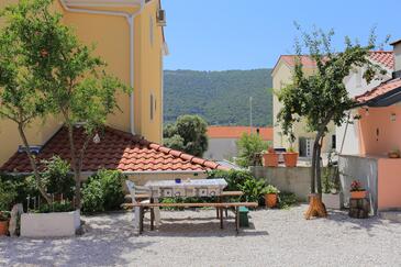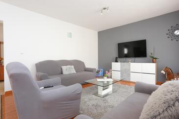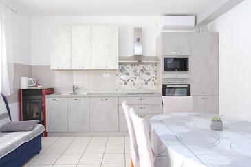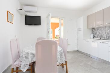Ferienwohnung bietet Platz für 6 Gäste. Die Betten sind in Schlafzimmern, die es 3 gibt, innerhalb einer Gesamtfläche von 77m2, angeordnet. Die Gäste haben eine eigene Terrasse zur Verfügung, auf der sie in warmen Sommernächten genießen können. Es ist erlaubt, Speisen auf dem Gemeinschafts-Grill vorzubereiten.