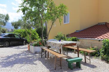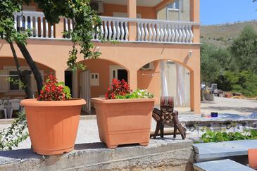 Ferienwohnung bietet Platz für 6 Gäste. Die Betten sind in Schlafzimmern, die es 3 gibt, innerhalb einer Gesamtfläche von 77m2, angeordnet. Die Gäste haben eine eigene Terrasse zur Verfügung, auf der sie in warmen Sommernächten genießen können. Es ist erlaubt, Speisen auf dem Gemeinschafts-Grill vorzubereiten.