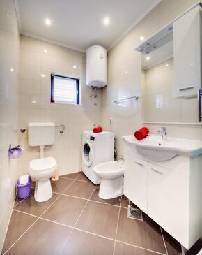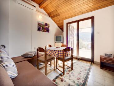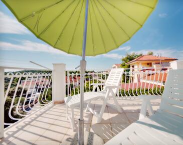 Ferienwohnung bietet Platz für 5 Gäste. Die Betten sind in Schlafzimmern, die es 2 gibt, und in Wohnzimmer, innerhalb einer Gesamtfläche von 54m2, angeordnet. Die Gäste haben eine eigene Terrasse zur Verfügung, auf der sie in warmen Sommernächten genießen können. Das Apartment bietet Meerblick. Es ist erlaubt, Speisen auf dem Gemeinschafts-Grill vorzubereiten.