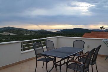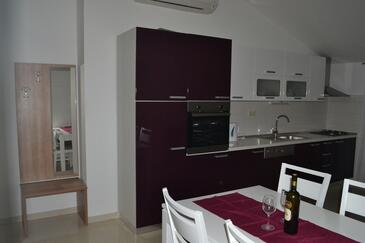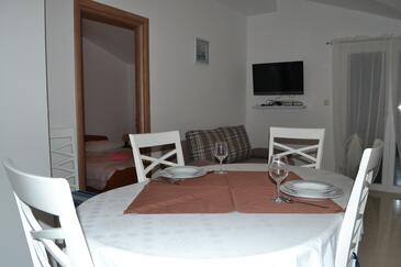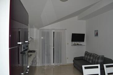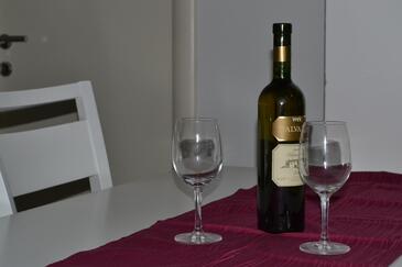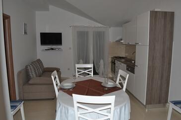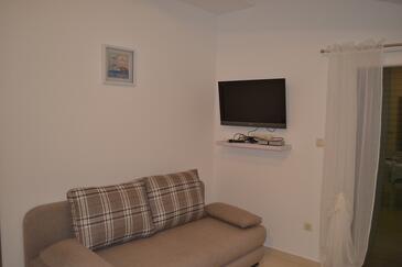 Ferienwohnung bietet Platz für 4 Gäste. Die Betten sind in Schlafzimmern, die es 2 gibt, innerhalb einer Gesamtfläche von 51m2, angeordnet. Die Gäste haben eine eigene Terrasse zur Verfügung, auf der sie in warmen Sommernächten genießen können. Das Apartment bietet Meerblick. Es ist erlaubt, Speisen auf dem Gemeinschafts-Grill vorzubereiten.