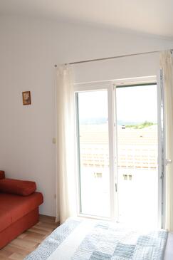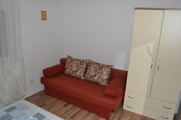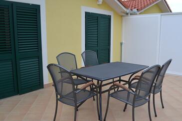 Ferienwohnung bietet Platz für 4 Gäste. Die Betten sind in Schlafzimmern, die es 2 gibt, innerhalb einer Gesamtfläche von 51m2, angeordnet. Die Gäste haben eine eigene Terrasse zur Verfügung, auf der sie in warmen Sommernächten genießen können. Das Apartment bietet Meerblick. Es ist erlaubt, Speisen auf dem Gemeinschafts-Grill vorzubereiten.