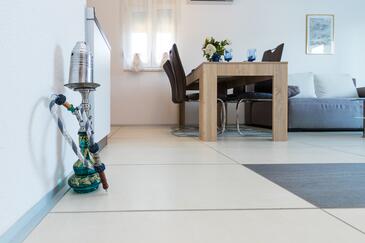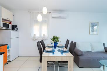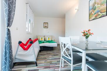 Ferienwohnung bietet Platz für 2 Gäste. Die Betten sind in Schlafzimmern, die es 1 gibt, innerhalb einer Gesamtfläche von 34m2, angeordnet. Die Gäste haben eine eigene Terrasse zur Verfügung, auf der sie in warmen Sommernächten genießen können. Das Apartment bietet Meerblick. Es ist erlaubt, Speisen auf dem Gemeinschafts-Grill vorzubereiten. In der Unterkunftseinheit besteht die Möglichkeit des Mitbringens von Haustieren gegen Aufpreis.