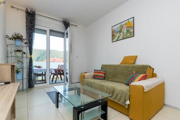 Ferienwohnung bietet Platz für 4 Gäste. Die Betten sind in Schlafzimmern, die es 1 gibt, und in Wohnzimmer, innerhalb einer Gesamtfläche von 34m2, angeordnet. Die Gäste haben eine eigene Terrasse zur Verfügung, auf der sie in warmen Sommernächten genießen können. Das Apartment bietet Meerblick. Es ist erlaubt, Speisen auf dem Gemeinschafts-Grill vorzubereiten. In der Unterkunftseinheit besteht die Möglichkeit des Mitbringens von Haustieren gegen Aufpreis.