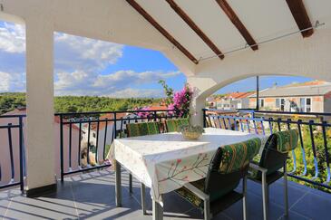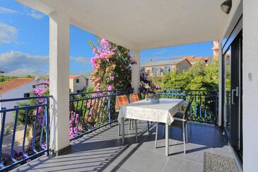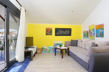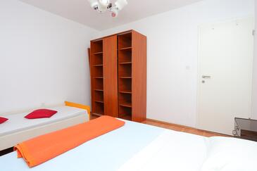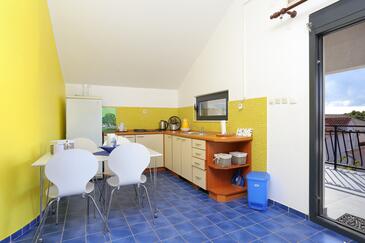 Ferienwohnung bietet Platz für 4 Gäste. Die Betten sind in Schlafzimmern, die es 2 gibt, innerhalb einer Gesamtfläche von 46m2, angeordnet. Die Gäste haben eine eigene Terrasse zur Verfügung, auf der sie in warmen Sommernächten genießen können. Es ist erlaubt, Speisen auf dem Gemeinschafts-Grill vorzubereiten.