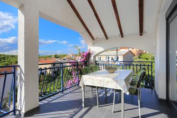 Ferienwohnung bietet Platz für 4 Gäste. Die Betten sind in Schlafzimmern, die es 2 gibt, innerhalb einer Gesamtfläche von 46m2, angeordnet. Die Gäste haben eine eigene Terrasse zur Verfügung, auf der sie in warmen Sommernächten genießen können. Es ist erlaubt, Speisen auf dem Gemeinschafts-Grill vorzubereiten.