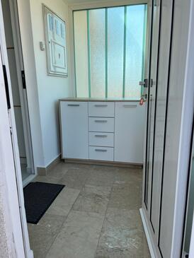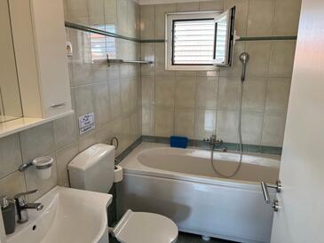 Ferienwohnung bietet Platz für 4 Gäste. Die Betten sind in Schlafzimmern, die es 2 gibt, innerhalb einer Gesamtfläche von 50m2, angeordnet. Die Gäste haben eine eigene Terrasse zur Verfügung, auf der sie in warmen Sommernächten genießen können. Das Apartment bietet Meerblick. Es ist erlaubt, Speisen auf dem Gemeinschafts-Grill vorzubereiten.