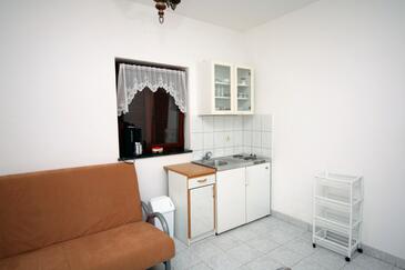 Ferienwohnung bietet Platz für 4 Gäste. Die Betten sind in Schlafzimmern, die es 1 gibt, und in Esszimmer, innerhalb einer Gesamtfläche von 27m2, angeordnet. Die Gäste haben einen eigenen Balkon zur Verfügung, auf der sie in warmen Sommernächten genießen können. Das Apartment bietet Meerblick. Es ist erlaubt, Speisen auf dem Gemeinschafts-Grill vorzubereiten. In der Unterkunftseinheit besteht die Möglichkeit des Mitbringens von Haustieren, und die Dienstleistung ist im Preis der Unterkunft enthalten.