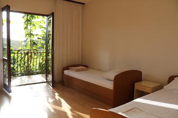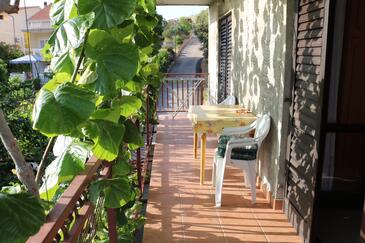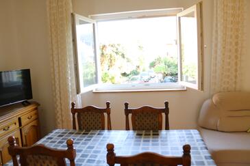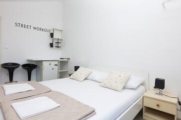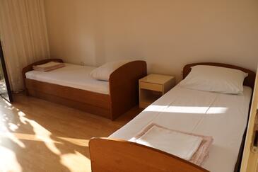 Ferienwohnung bietet Platz für 4 Gäste. Die Betten sind in Schlafzimmern, die es 2 gibt, innerhalb einer Gesamtfläche von 58m2, angeordnet. Die Gäste haben einen eigenen Balkon zur Verfügung, auf der sie in warmen Sommernächten genießen können. Es ist erlaubt, Speisen auf dem Gemeinschafts-Grill vorzubereiten.