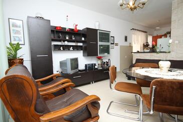 Ferienwohnung bietet Platz für 5 Gäste. Die Betten sind in Schlafzimmern, die es 2 gibt, und in Wohnzimmer, innerhalb einer Gesamtfläche von 60m2, angeordnet. Die Gäste haben eine eigene Terrasse zur Verfügung, auf der sie in warmen Sommernächten genießen können. Das Apartment bietet Meerblick. Es ist erlaubt, Speisen auf dem Gemeinschafts-Grill vorzubereiten. In der Unterkunftseinheit besteht die Möglichkeit des Mitbringens von Haustieren gegen Aufpreis.
