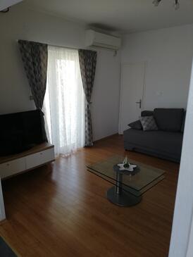 Ferienwohnung bietet Platz für 8 Gäste. Die Betten sind in Schlafzimmern, die es 2 gibt, und in Wohnzimmer, innerhalb einer Gesamtfläche von 85m2, angeordnet. Die Gäste haben eine eigene Terrasse zur Verfügung, auf der sie in warmen Sommernächten genießen können. Das Apartment bietet Meerblick. Es ist erlaubt, Speisen auf dem Gemeinschafts-Grill vorzubereiten.