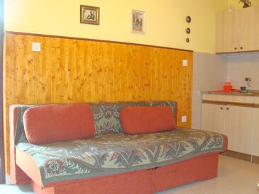 Ferienwohnung bietet Platz für 6 Gäste. Die Betten sind in Schlafzimmern, die es 2 gibt, und in Esszimmer, innerhalb einer Gesamtfläche von 48m2, angeordnet. Die Gäste haben eine eigene Terrasse zur Verfügung, auf der sie in warmen Sommernächten genießen können. Es ist erlaubt, Speisen auf dem Gemeinschafts-Grill vorzubereiten. In der gebuchten Unterkunftseinheit zahlt man am Ort ein Depositum ( der Preis ist an der Internetseite angeführt ).